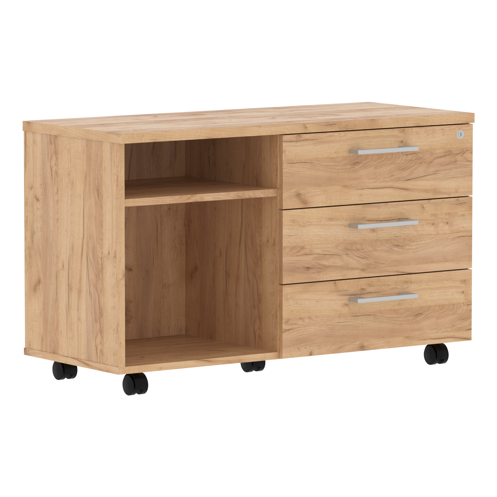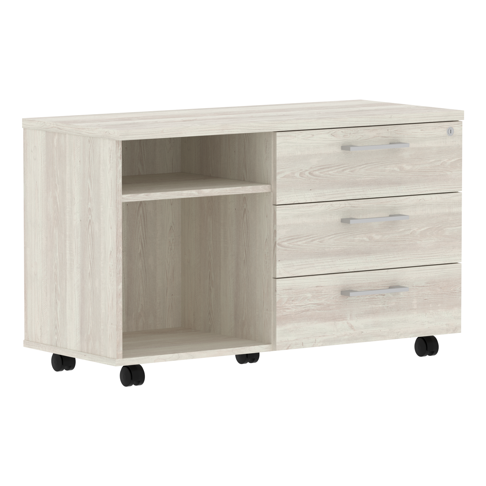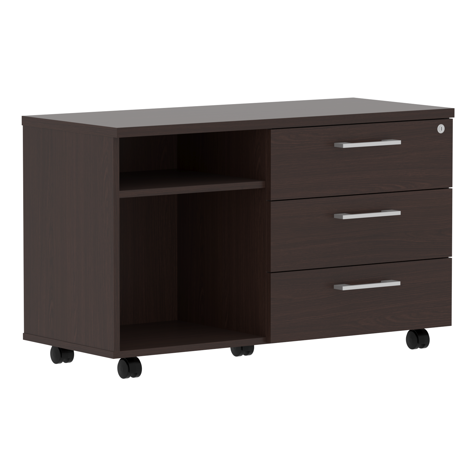 Тумба приставная только правая. Комплектуется центральным замком. Используется как самостоятельное изделие, так и для комплектации стола ТСТ 1820/2020/2220. Ящики-фолдинги размером 400х539х400, шариковые направляющие. Комплектуется 5 колесными опорами - 2 со стопором, 3 без стопора.