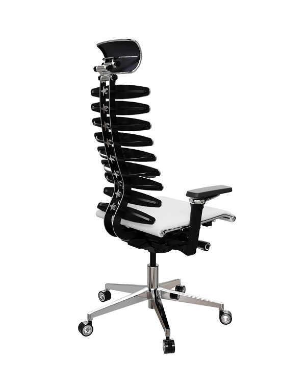 регулируемый 3D подголовник серии R повышенной комфортности с хромированным молдингом, каркас с полимерным покрытием черного цвета и хромированным молдингом. Регулировка по глубине, высоте и углу наклона.