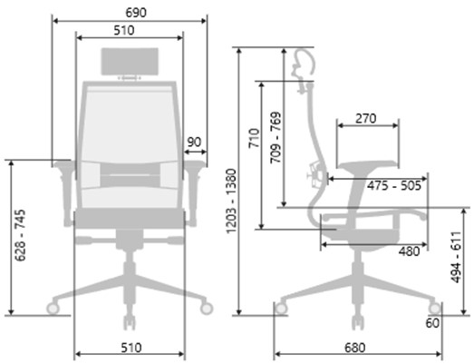 Регулируемая 3D поясничная поддержка (РПП): каркас стальной пластинчатый с полимерным покрытием черного цвета и хромированным молдингом. Подвижная часть РПП стальная хромированная, ремни из искусственной кожи Extra. Регулировка по глубине, высоте и жесткости.