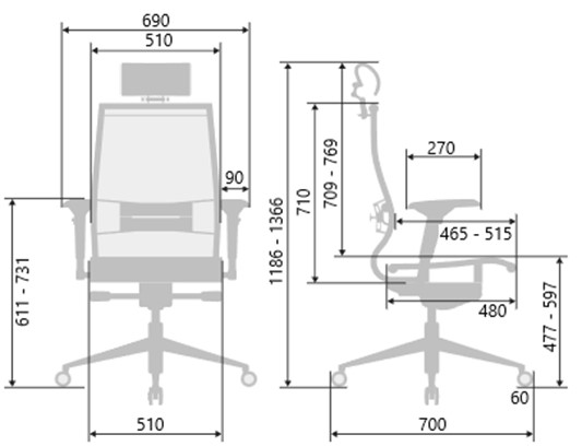 Регулируемая 3D поясничная поддержка (РПП): каркас стальной пластинчатый с полимерным покрытием черного цвета и хромированным молдингом. Подвижная часть РПП стальная хромированная, ремни из искусственной кожи Extra. Регулировка по глубине, высоте и жесткости.