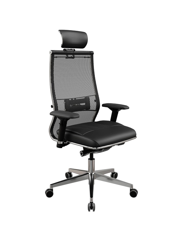 Регулируемая 3D поясничная поддержка (РПП): каркас стальной пластинчатый с полимерным покрытием черного цвета и хромированным молдингом. Подвижная часть РПП стальная хромированная, ремни из искусственной кожи Extra. Регулировка по глубине, высоте и жесткости.